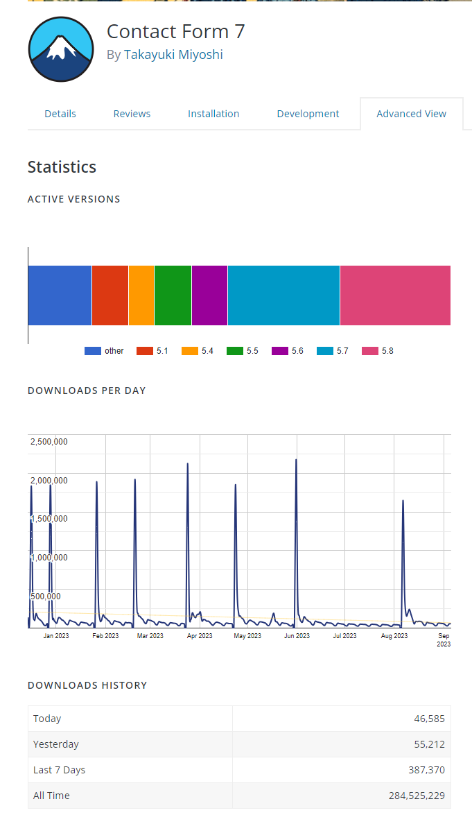 | % of Contact Form 7 usage | 0.15 % | 0.75 % | 1.5 % |