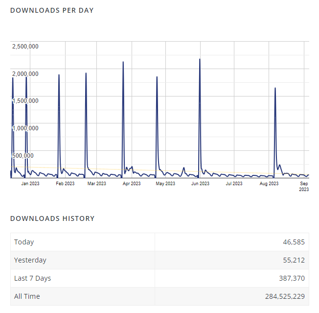 We’ve noticed all plugins follow a very similar pattern. You can use this as guide to the size of a plugin & its growth over time. However you need to appropriately handle the peaks after plugin updates.