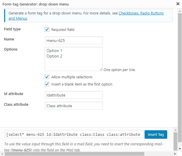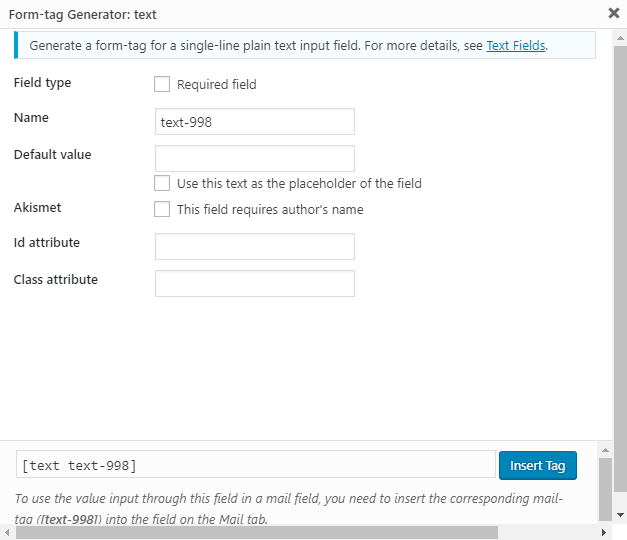 CF7 Tag Generator