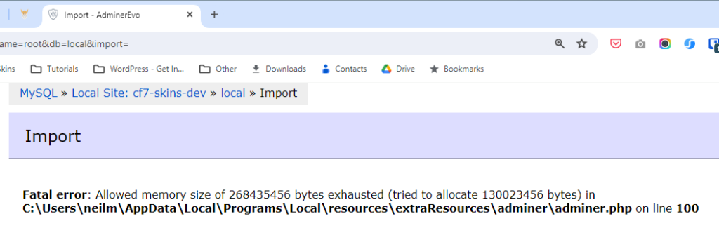 We’ve had ongoing problems importing the CF7 Skins Test Database into Local on Windows as the database got larger.
