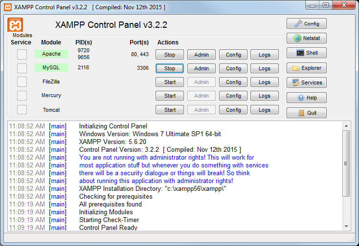 I don’t setup Apache & MySQL as windows services as this can cause problems when switching to another PHP version. See Windows Frequently Asked Questions > How can I install a server as a service?