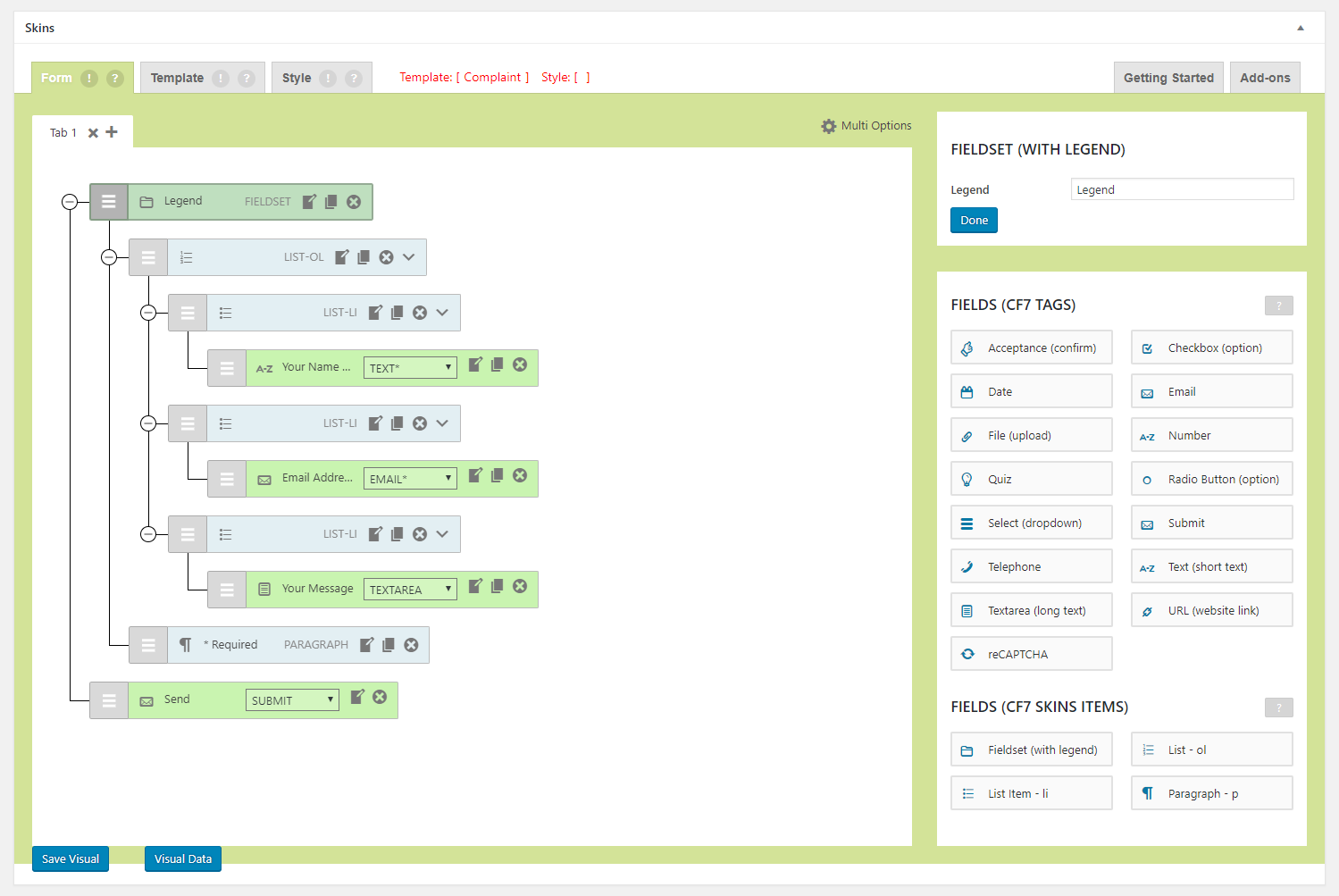 It is now possible to use the CF7 Skins Visual Editor to build a new Template exactly as you want.