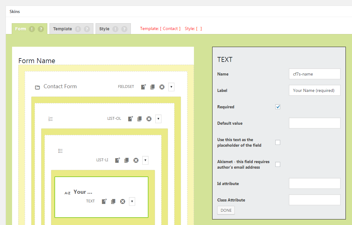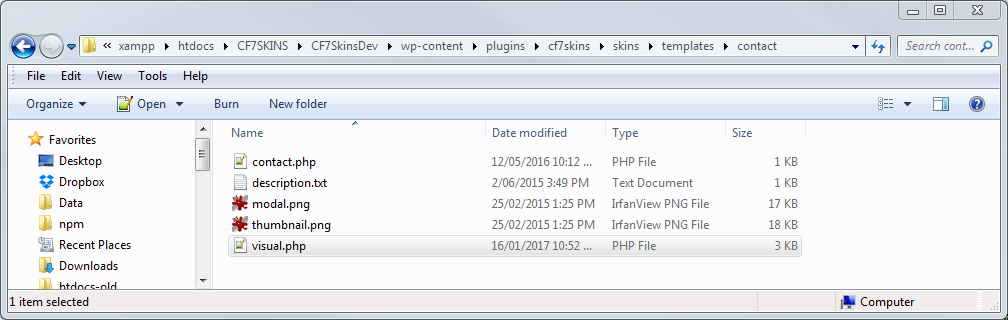 In this example, we use the contact-form-7-skins\skins\templates\contact template.