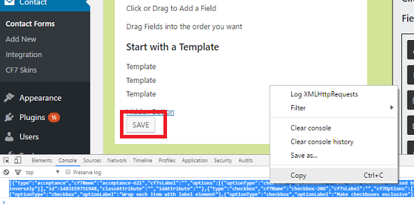 Note: You may need to press ctrl+shift+r to reload the page ignoring the local browser cache – reloading the page ignoring the local browser cache ensures the cf7svisual global variable is updated.
