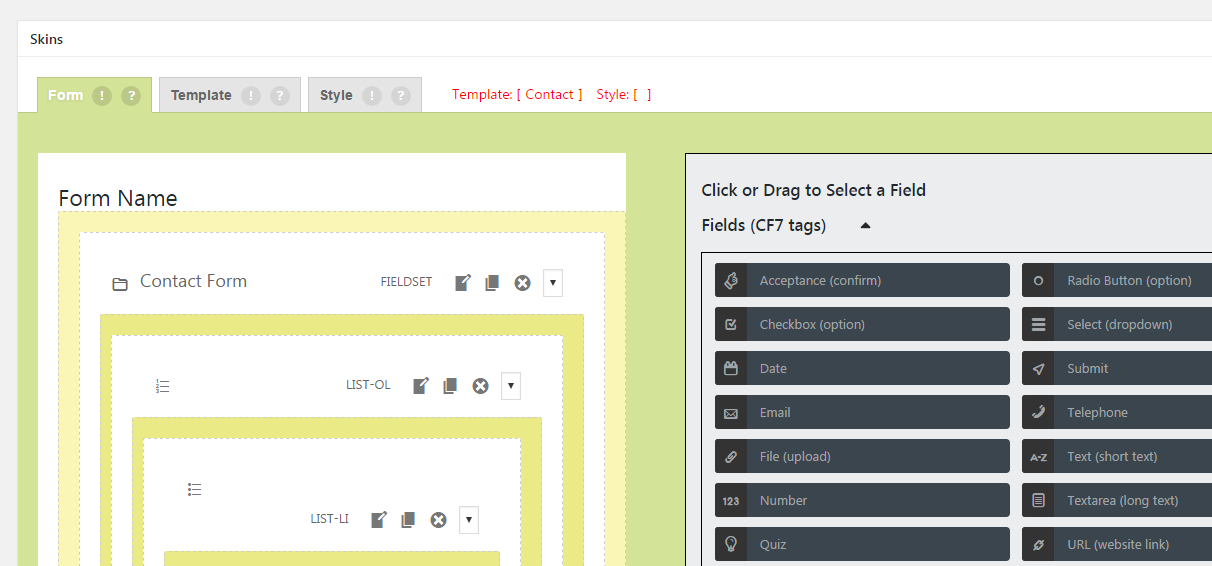 We need to prepare Visual versions for each Template added to Contact Form 7 Skins.