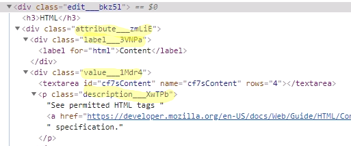 While developing the HTML CF7 item, as part of the CF7 Skins Pro Add-on, we needed to have the same CSS for the EDIT section of this field, as available for other fields.