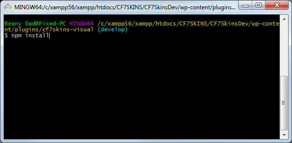 - npm run webpack – re-builds CF7 Skins Visual plugins