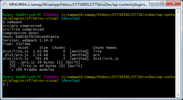 For production builds of CF7 Skins Visual plugins run .. from the command line: