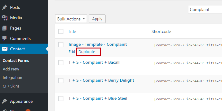 We can duplicate those forms for the new template – click the Duplicate link on each form.