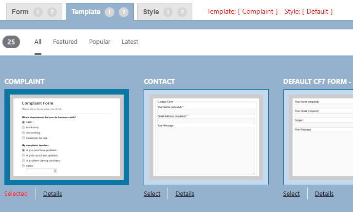 - CF7 Skins Templates