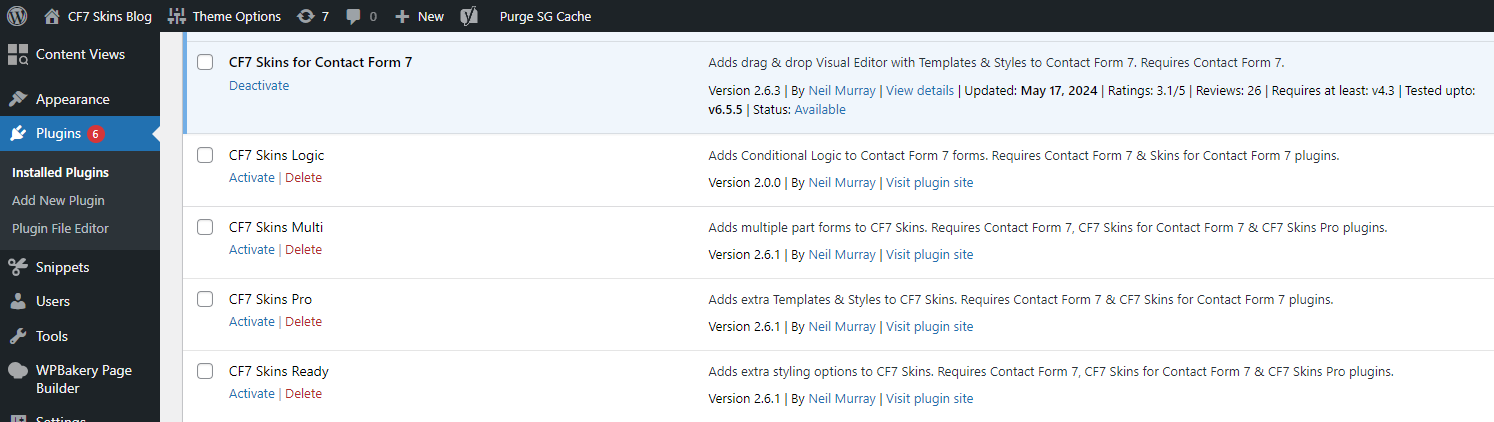 - CF7 Skins Forms – list & collection of forms used on our sites