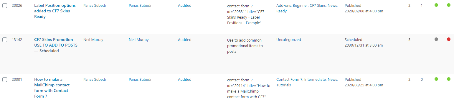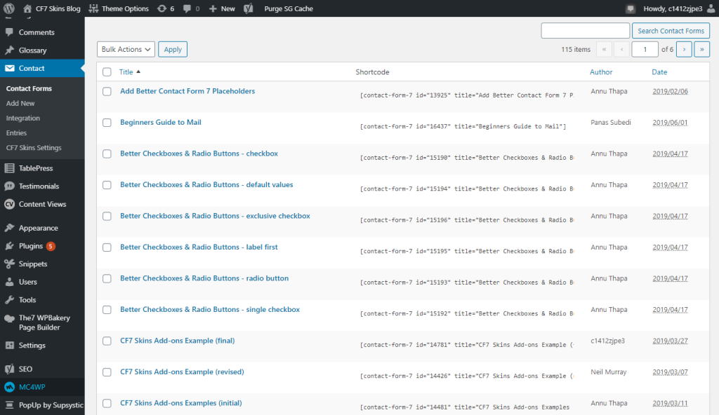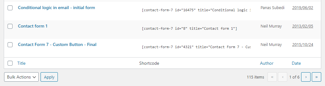 Tip: You can use the Search Contact Forms to narrow down the range of CF7 forms visible.
