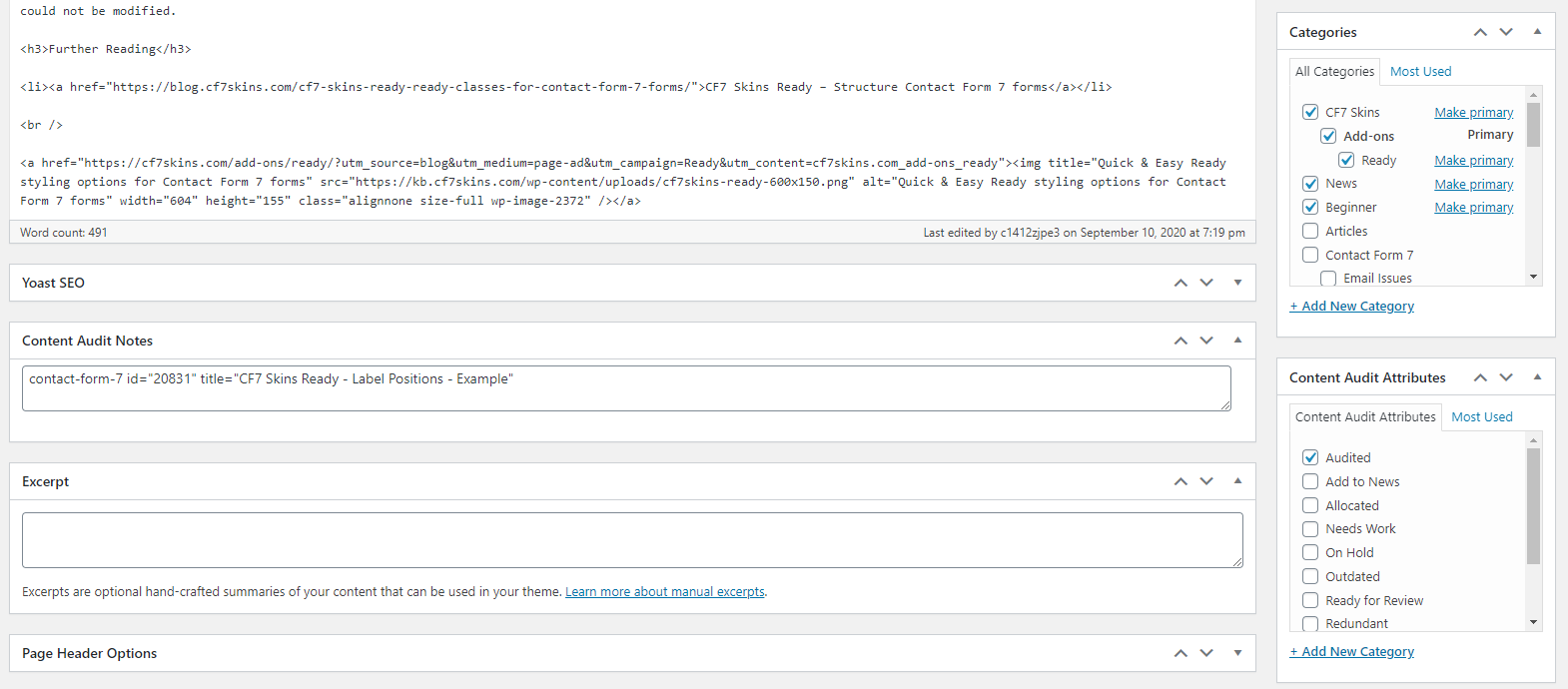 Add CF7 form ID of any form used on each article #
