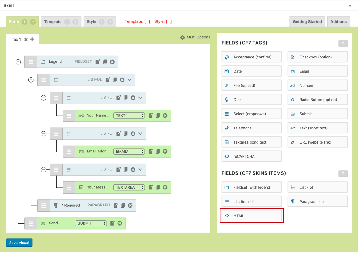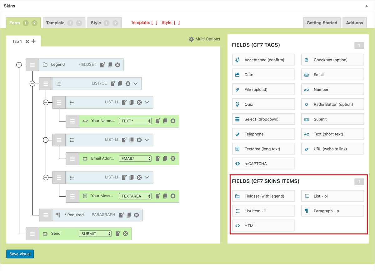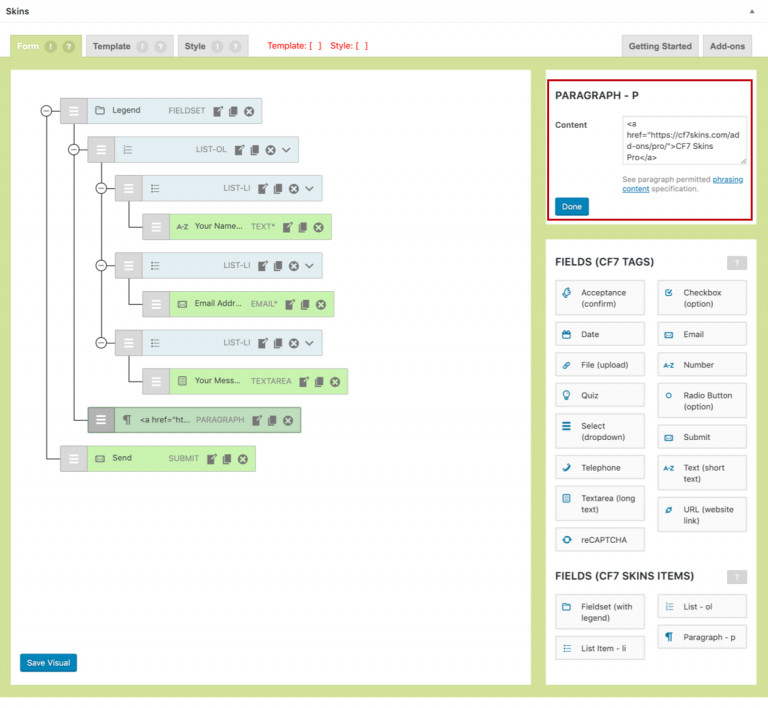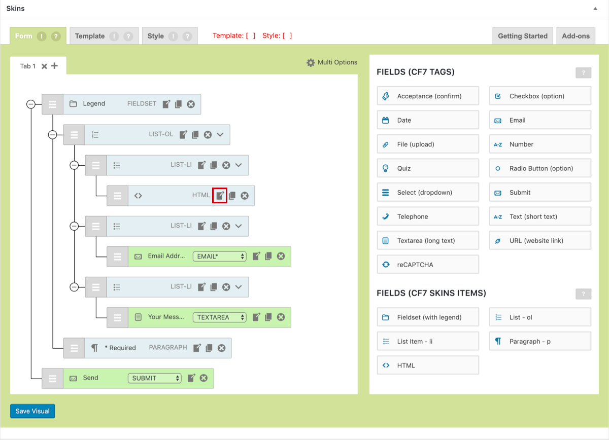 Edit your CF7 Skins Form (CF7 Skins Visual Editor) #