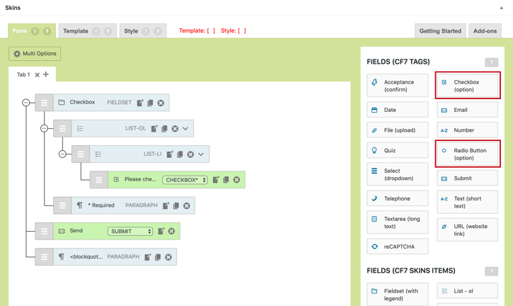 Create a form with CF7 Skins #