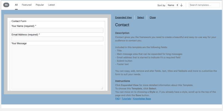 Choosing a Template for Your Form #