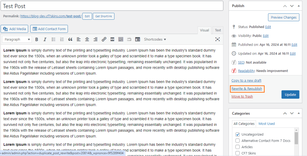 - Click Rewrite and Republish from Right side Widget