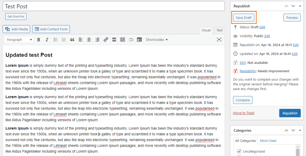 Before making any changes, its advisable to save a draft of the original post/page. This ensures that you have a backup of the content before proceeding with any modifications.