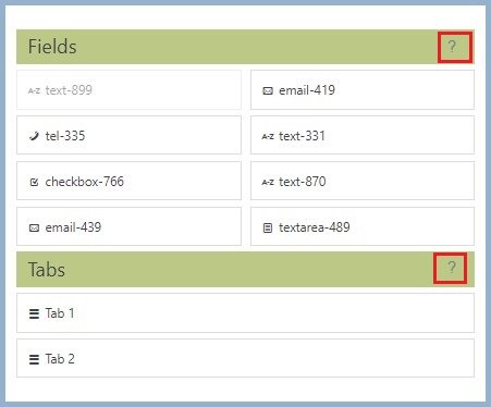 - ? – Acts as a container for multiple form fields which group together related fields to allow more detailed styling and CSS customization.