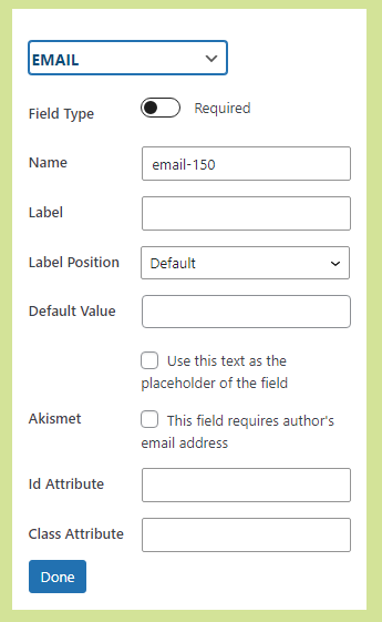 - Akismet – If checked & field is used for name, Akismet Antispam protection for Name field will be enabled.