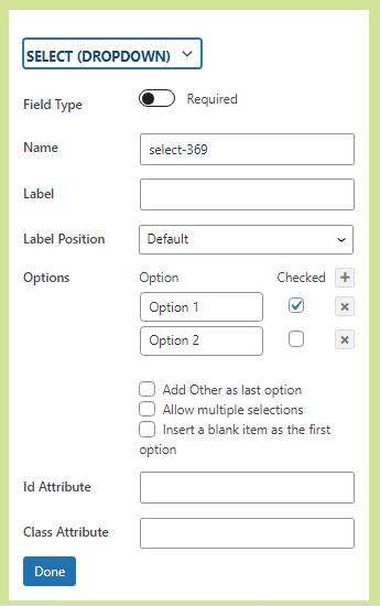 - Class Attribute – CSS Class added to this field (used for custom CSS styling)