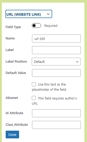 - Akismet – If checked, Akismet Antispam protection for URL field will be enabled.