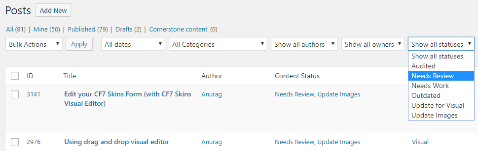 You should adjust the Content Audit information on any article where you notice issues that need attention – it’s quick & easy to add this via Quick Edit.