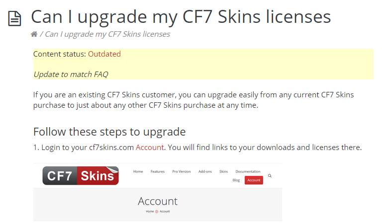 Example: While updating FAQs and articles for the new Visual Editor, you can easily see all items that need to updated using the “Update for Visual” status.