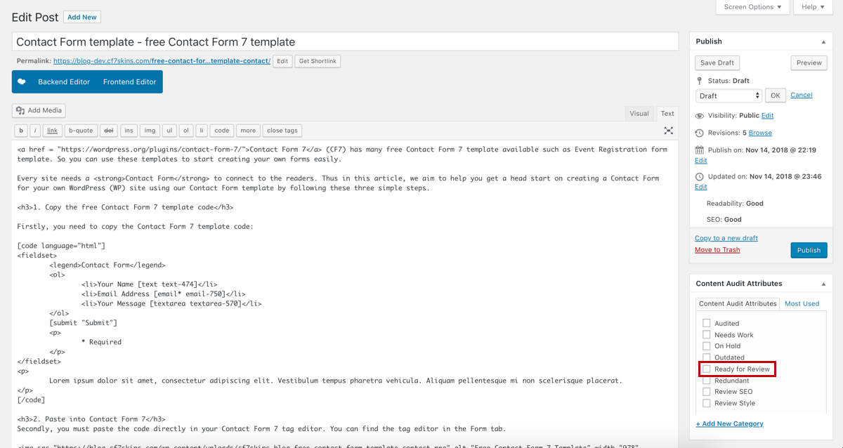 - Once your article is ready for review, you need to update the status in the Content Audit as Ready to Review.
