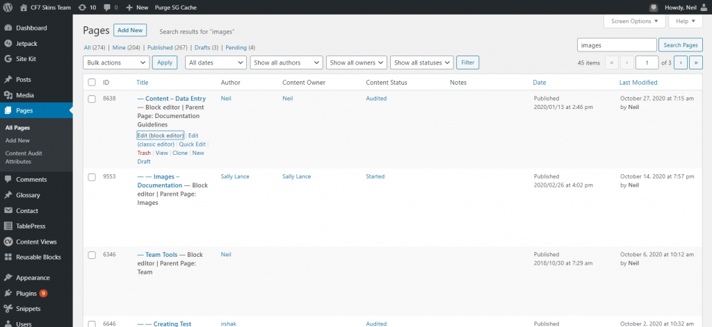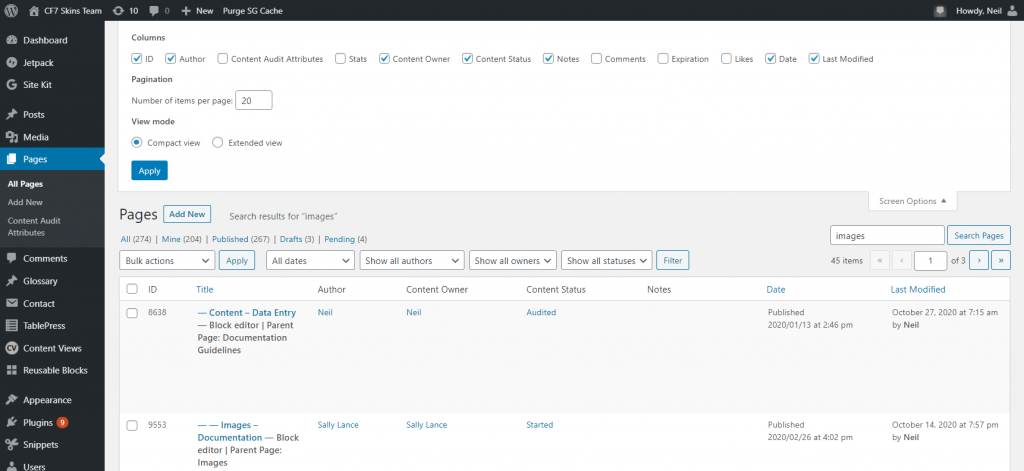For example you can make it easier to find & copy page or post info by setting your Screen Options.