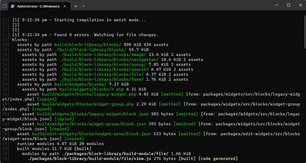 npm run devto run continuous builds automatically as source files change.The dev build also includes additional warnings and errors to help troubleshoot while developing.