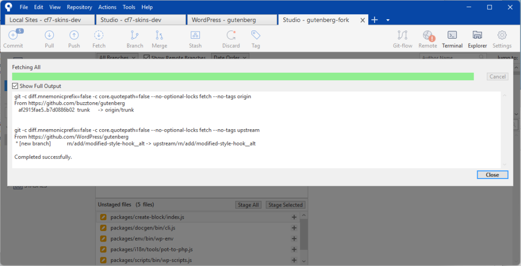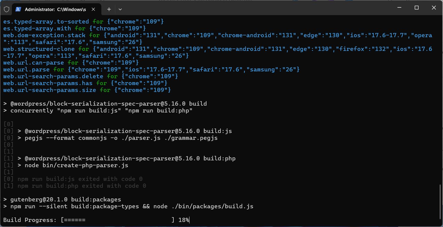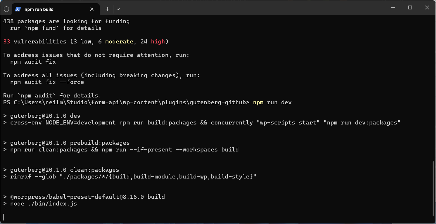 Once this completes correctly you’ll notice the Gutenberg plugin installed and activated, this is your local build.