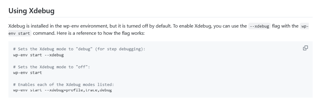 wp-env start –xdebug=profile,trace,debug