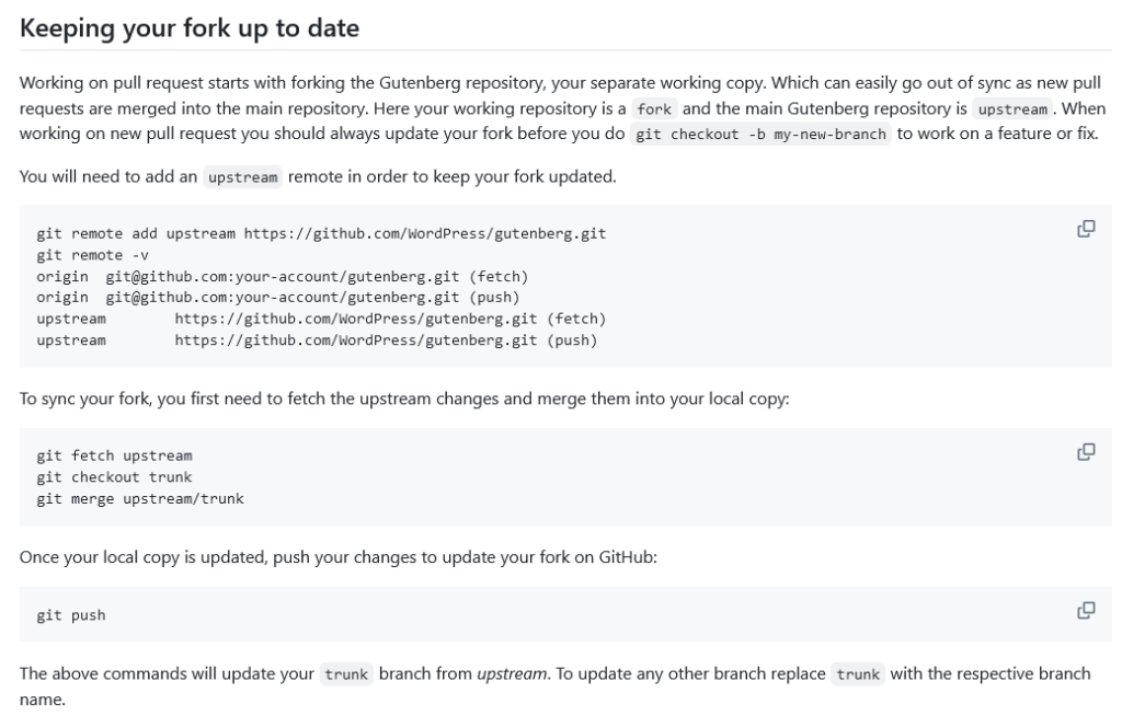 - Gutenberg – fork, clone, commit