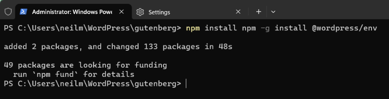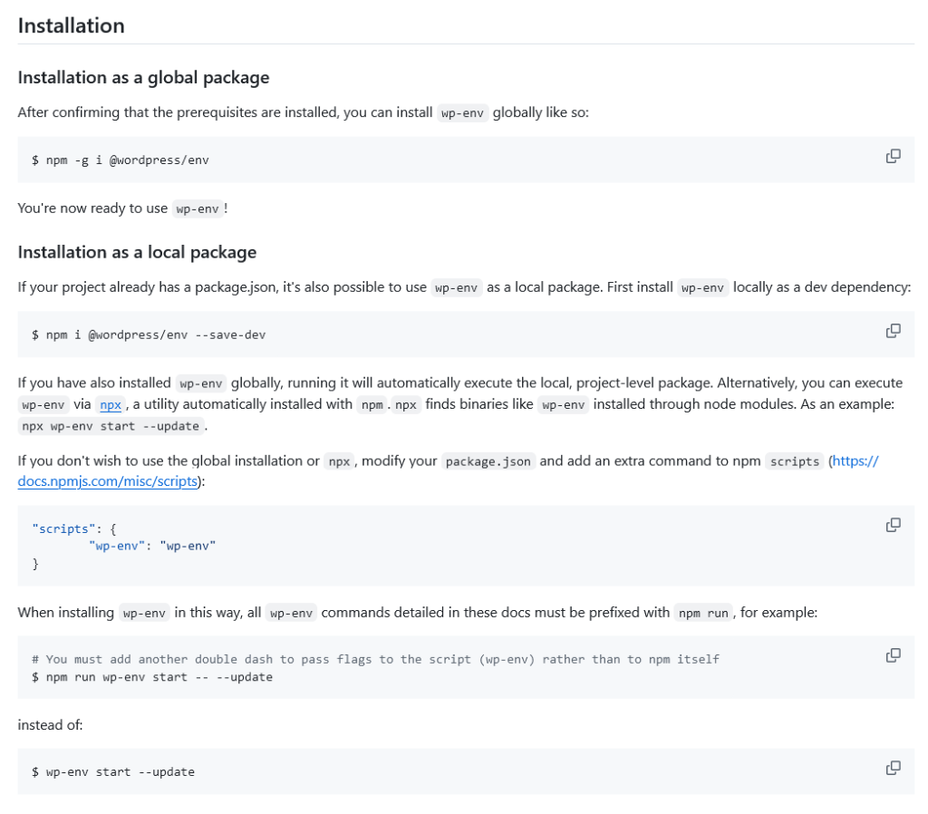 - Install wp-env globally