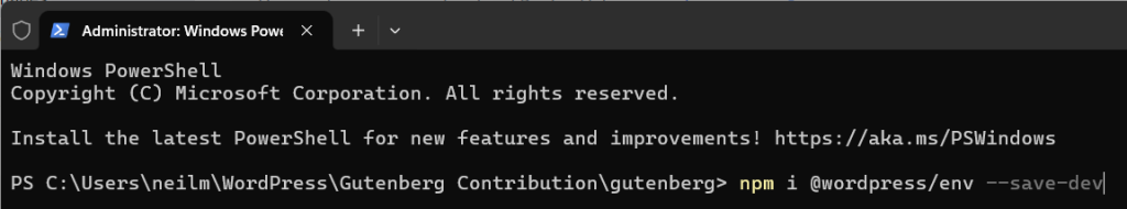 Refer: Setup wp-env – Install Gutenberg