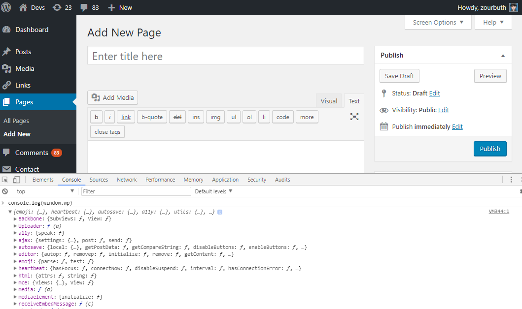 Gutenberg adds additional function/object into window.wp such as blocks, components, etc.