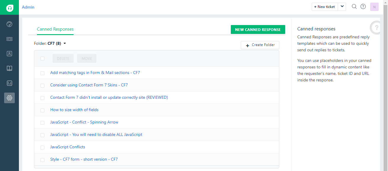 Make sure the Moved Canned Responses are added in the CF7 folder.