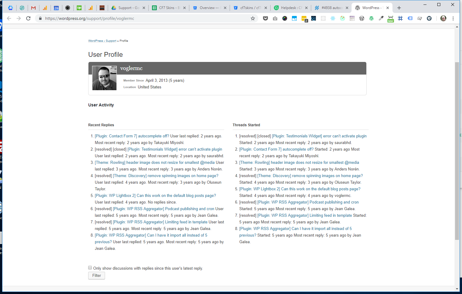 C. Visit the users WordPress profile e.g. https://wordpress.org/support/users/csweths/