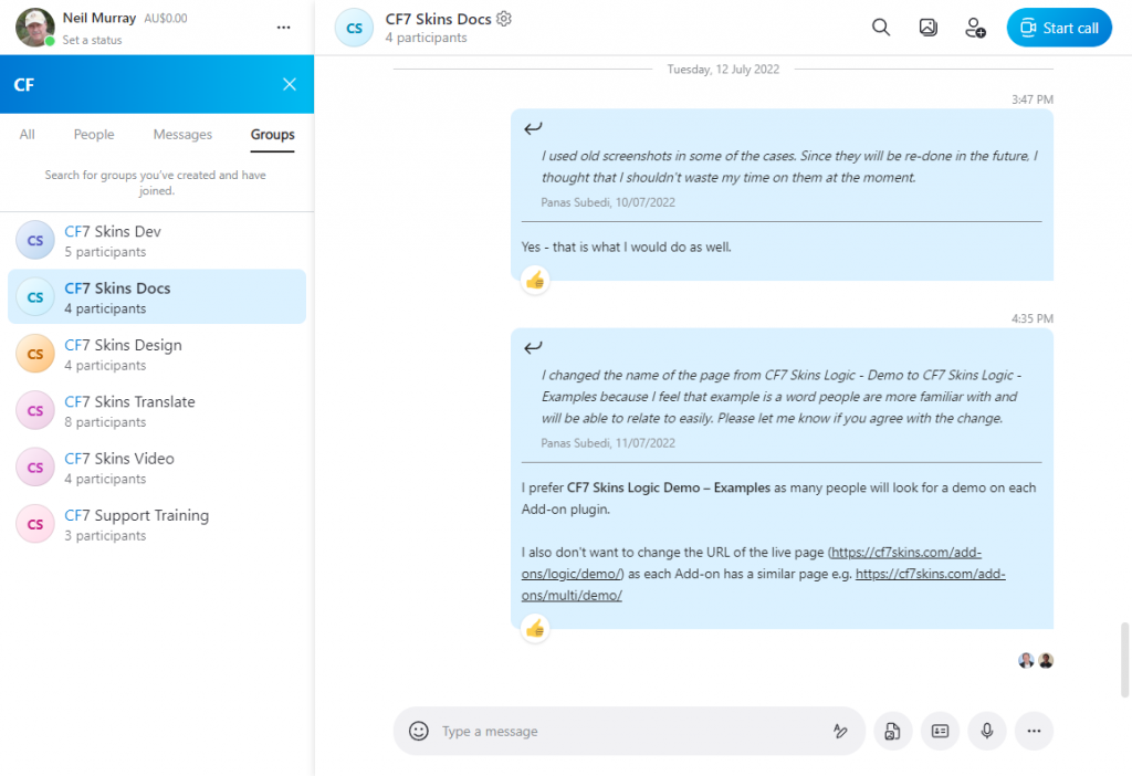 We can also talk on Skype voice using screenshare when necessary, but we don’t use this often.