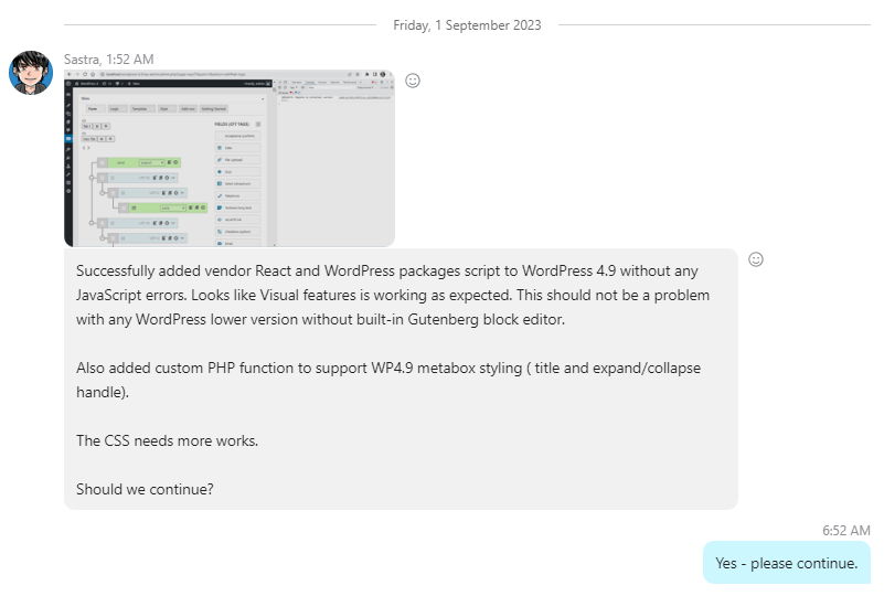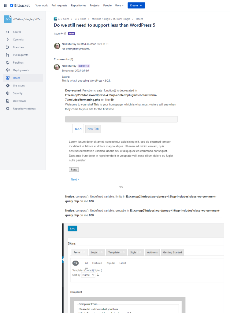 - Skype – 1 or 2 small images (if helpful) which summarizes what is shown on the Bitbucket issue comment