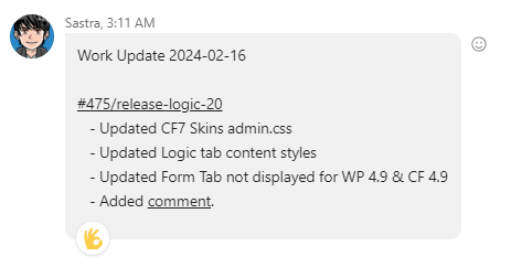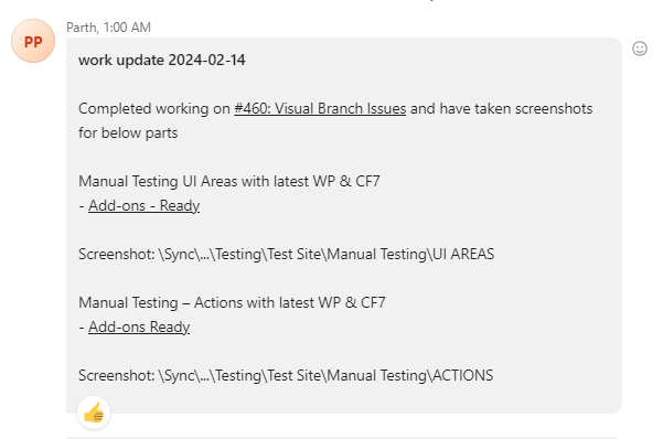 Work Updates are an important daily ritual for all team members. At the end of every working day, you should update others about all you did. It helps others to supervise your work and make communication clear.