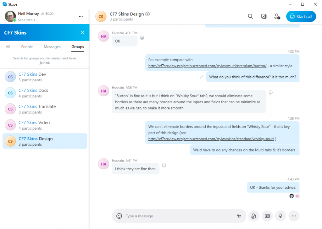 We’ll invite you to the CF7 Skins Test Skype group. Nearly all of your communication with us should happen here – see Team Roles – Skype.