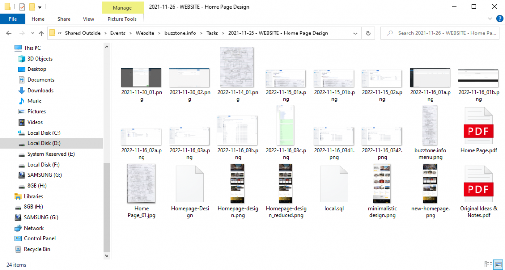 You should always add any screenshots, files & images you use into the relevant Sync folder as soon as you start working on any new item.