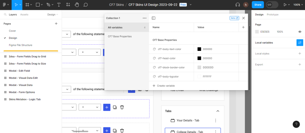 We use Figma to document & plan changes to the CF7 Skins UI.